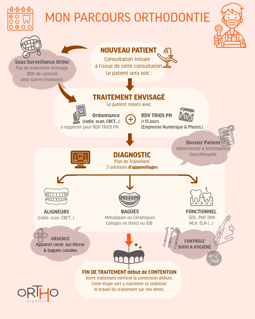 Selon le cas, différentes options sont proposées (appareils fixes, gouttières amovibles, extractions dentaires, etc.) avec leurs avantages/inconvénients et un devis estimatif.
